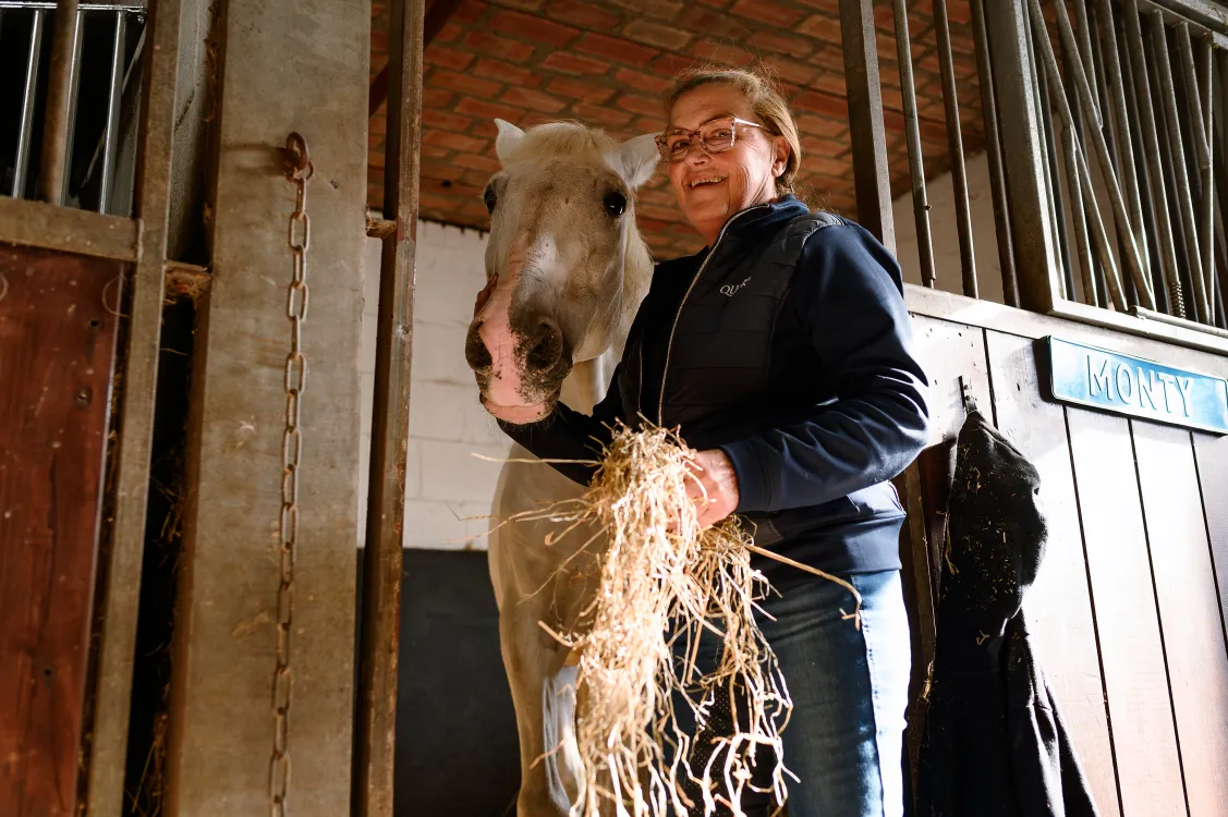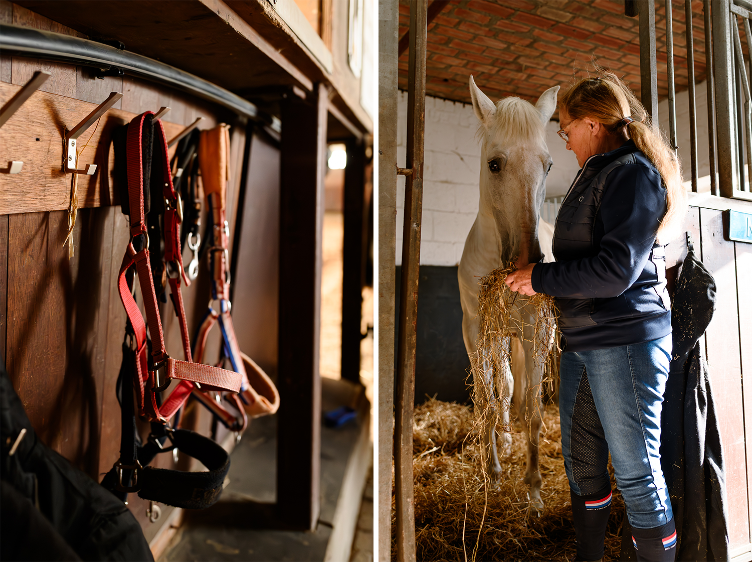 Na ons gesprek neemt Lidy me mee voor een uitgebreide rondleiding. We beginnen bij de stallen naast de binnenbak, waar een ruiter net rondes rijdt. Het zonlicht valt op het opstuivende zand dat door de hoeven van het paard omhoog wordt gegooid. Zelfs als je geen fervente paardensportliefhebber bent, is het schitterend om te zien. Terwijl we verder lopen, valt me op hoeveel paarden er hier staan. “We hebben bijna honderd paarden,” vertelt Lidy. “Vijftig zijn van onszelf, en de rest worden hier gestald door andere paardeneigenaren. We zorgen ervoor dat de paarden hier niets tekortkomen, van een comfortabele bodembedekking tot uitgebalanceerd voer.” Onderweg passeren we enkele stalmedewerkers die liefdevol tegen de paarden praten terwijl ze de stallen schoonmaken. Voor de pensionklanten is er een handig online systeem waarmee ze eenvoudig een plekje in de binnenbak kunnen reserveren. Zo kunnen de paarden in alle rust hun energie kwijt, zonder dat er sprake is van drukte.
