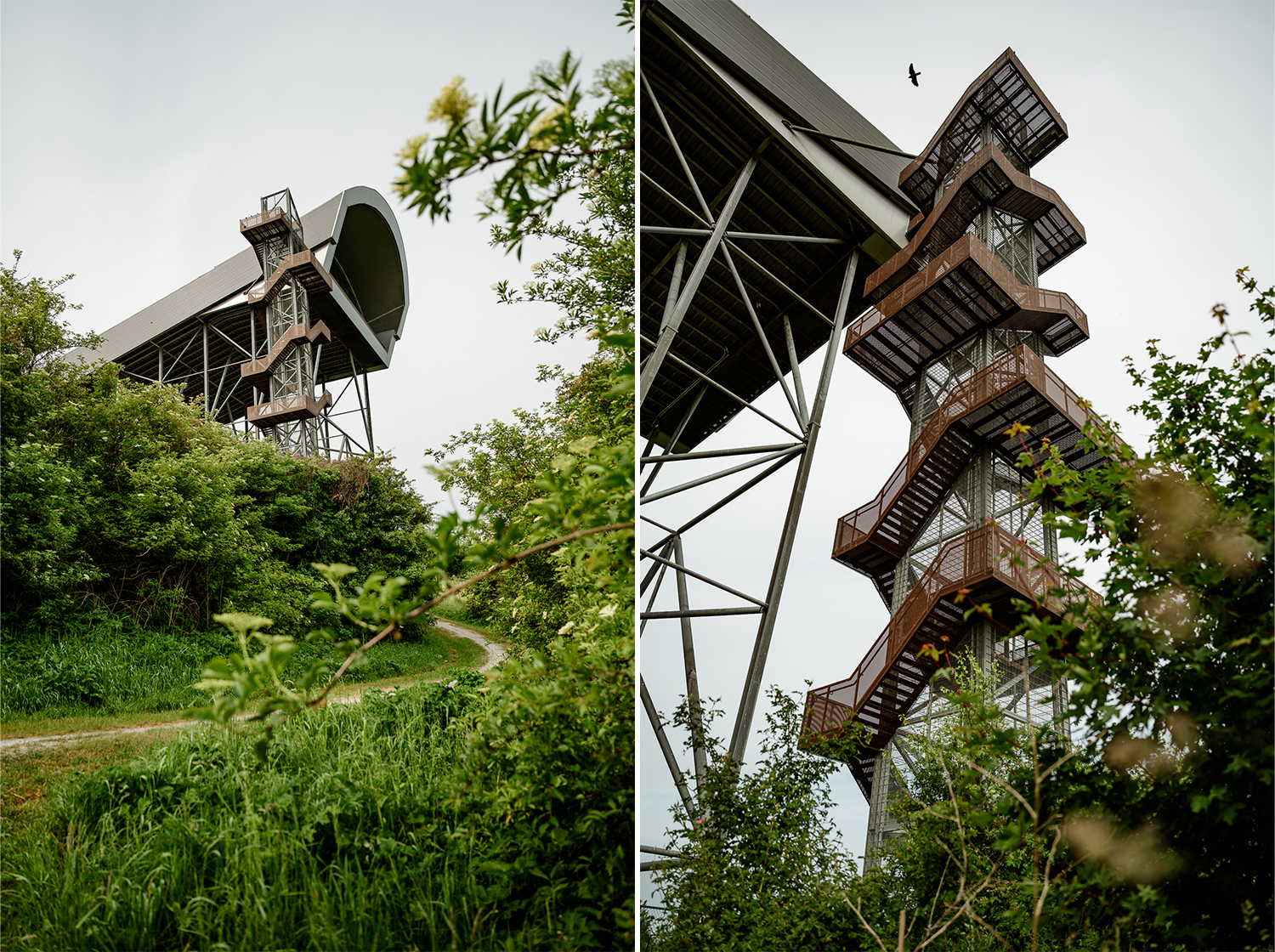Ik loop richting de voet van de piste. Het struikgewas wijkt uiteen en ineens zie ik een trap die omhoog leidt naar een uitkijkpunt. Helaas is halverwege de trap afgesloten. Jammer, maar ook vanaf hier heb je een weids uitzicht over het park. En eerlijk is eerlijk: het voelt totaal niet alsof ik me in een van de drukst bevolkte regio’s van Nederland bevind.