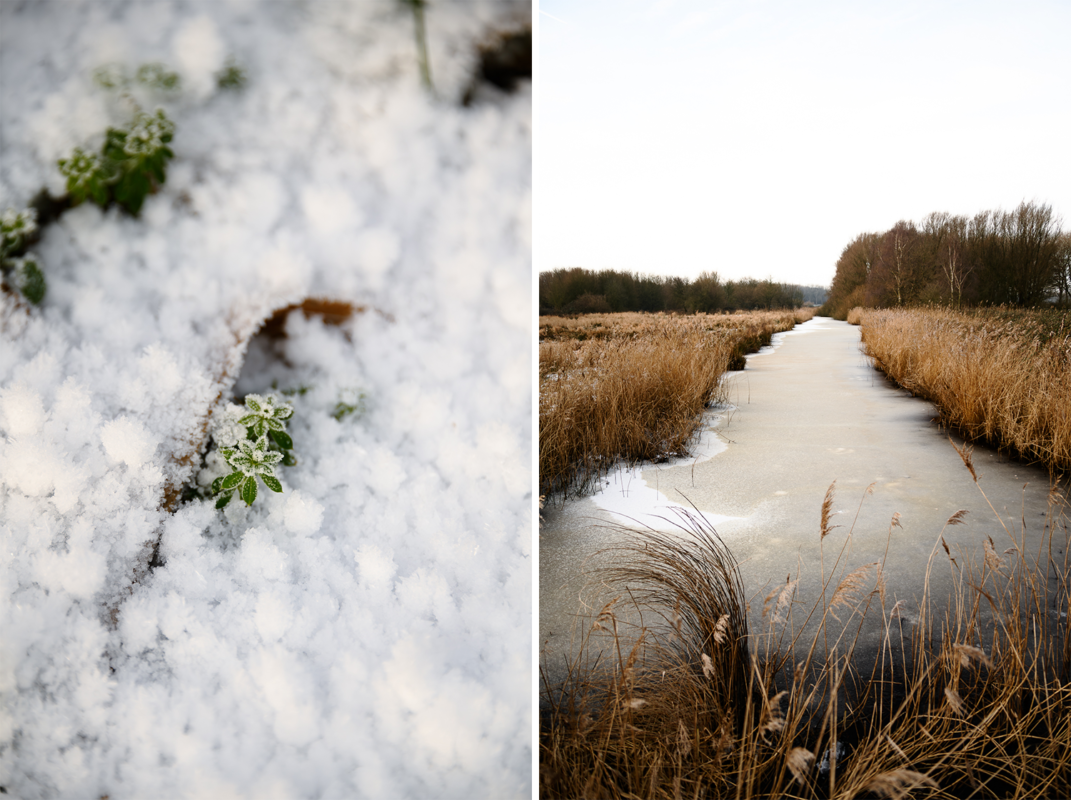 Er ligt nog wat sneeuw en de sloten zijn bedekt met een ijslaag. De wind is snijdend koud, maar terwijl ik mijn sjaal wat hoger optrek breekt het zonnetje breekt al door de ochtendnevel heen.